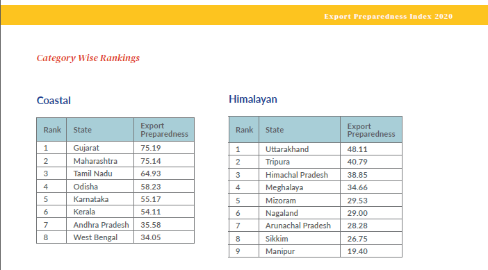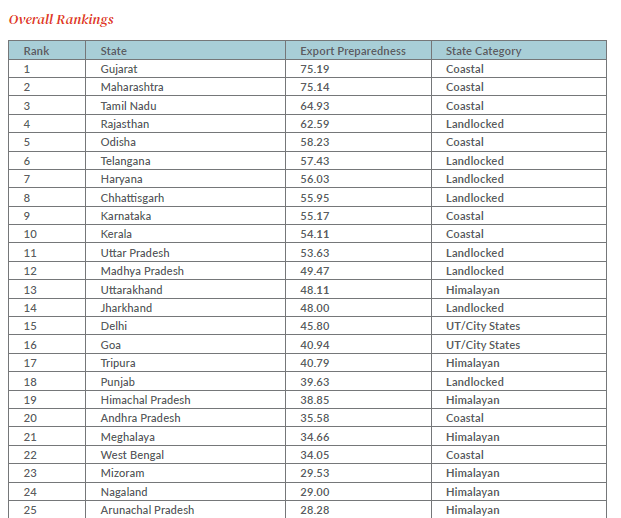 The state has an export preparedness of 58.23 points, according to the government think tank’s report released on Wednesday.