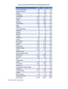 Rs 1,17,010 crore. Of the total GST collection, CGST accounted for Rs 20,578 crore, SGST Rs 26,767 crore, IGST Rs 60,911 crore (including ₹ 29,555 crore collected on import of goods) and Cess Rs 8,754 crore (including ₹ 623 crore collected on import of goods).