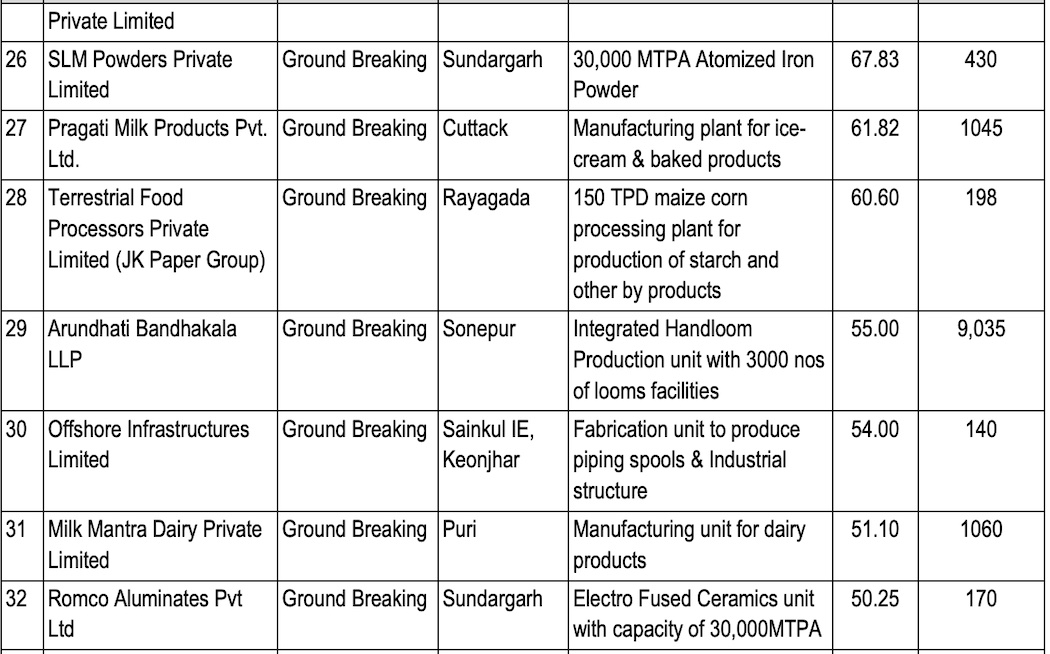According to a CMO release, these projects with a total investment of Rs 6992.94 crore and employment potential of 24,508 are spread over 14 districts – Balangir, Boudh, Cuttack, Ganjam, Jajpur, Jagatsinghpur, Jharsuguda, Keonjhar, Khurda, Puri, Rayagada, Sambalpur, Sonepur and Sundargarh.