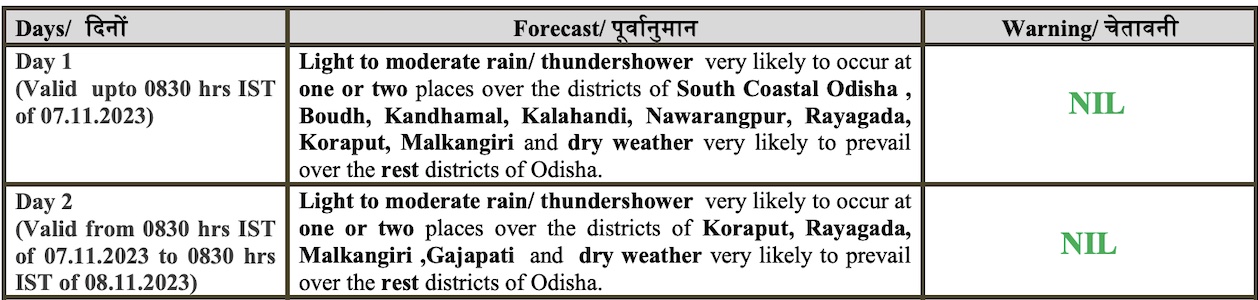 The weather agency has also forecast light to moderate rain in some parts of the state for two days. Dry weather is likely to prevail across Odisha thereafter.