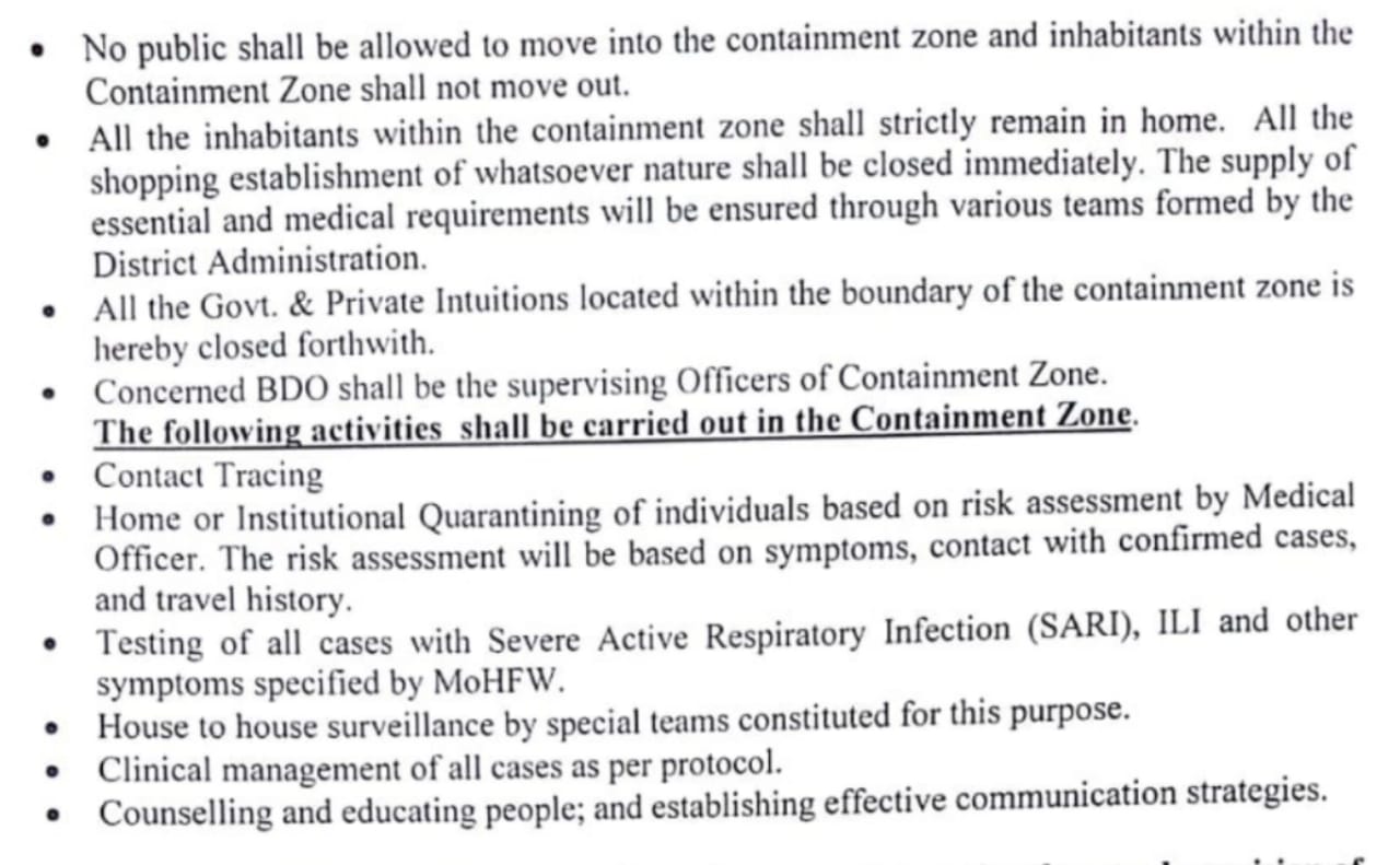 The concerned BDOs will be the supervising officers of containment zones, informed the Collector, Gyana Das.
