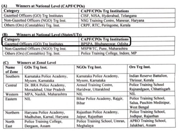 Notably, it had won the Best Police Training Institution at Eastern Zonal level for the years 2015-16, 2016-17, 2018-19 and 2019-20 in different categories.
