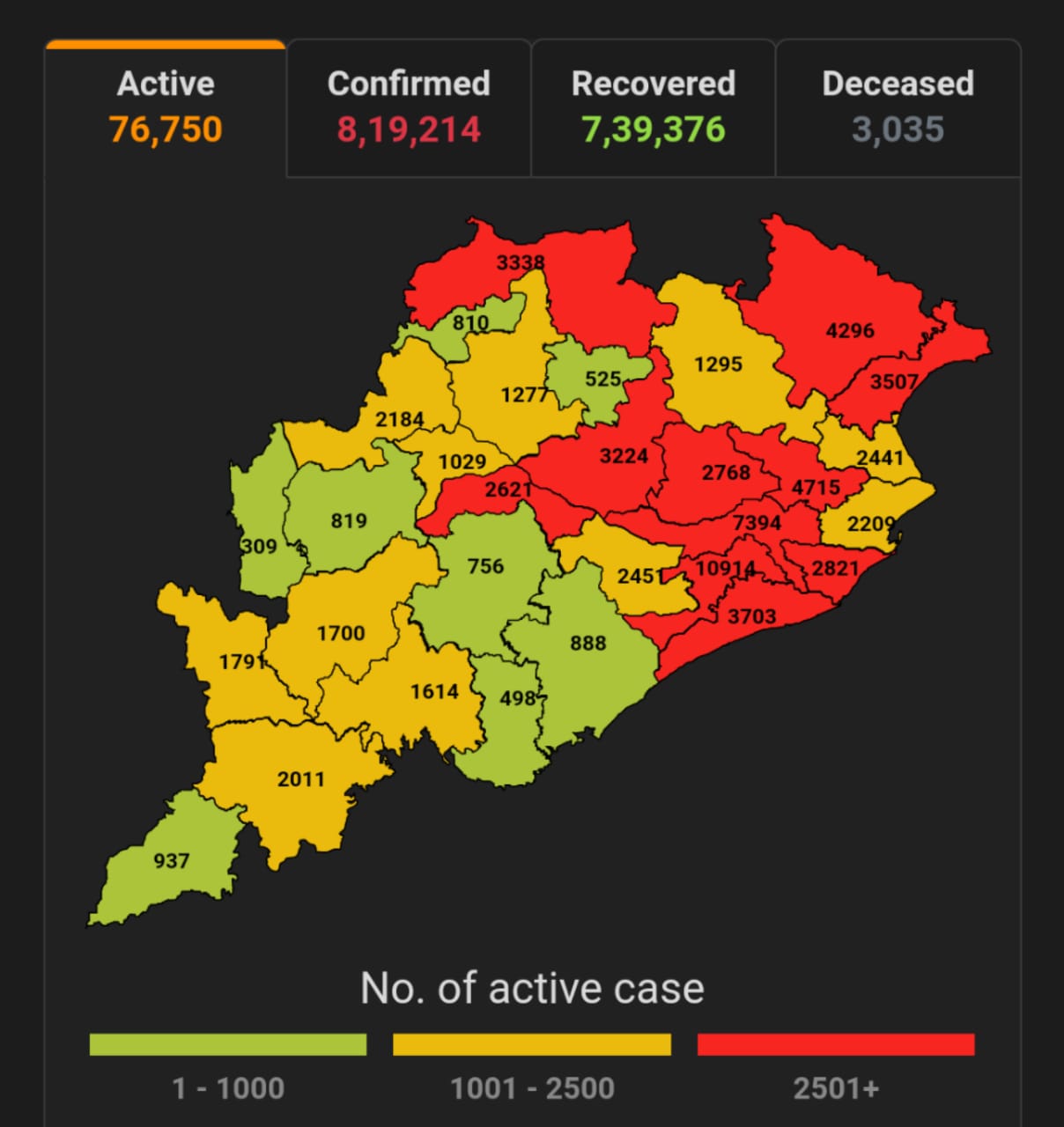 According to the I & PR department, the highest of 640 cases have been reported from Cuttack followed by Jajpur (563) and Khurda (495).