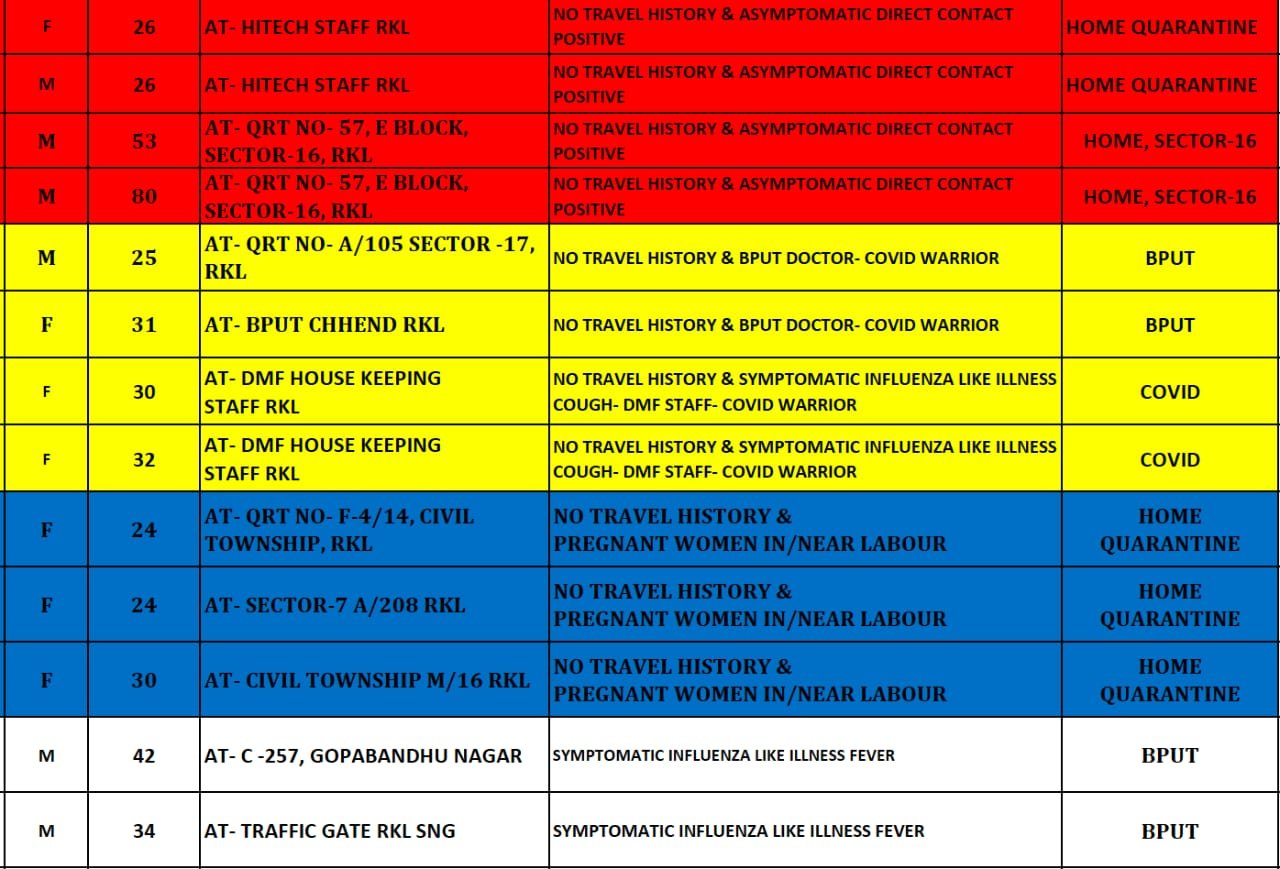 According to the district administration, two of the new patients are currently at Bhubaneswar COVID hospital, two are local contacts, 23 had the travel history, 22 are contacts of previous positive cases, three COVID warriors from Sundargarh, four COVID warriors working at BPUT, Rourkela, 14 are from TMC Sundargarh (contacts of previous positive)and three are pregnant women.