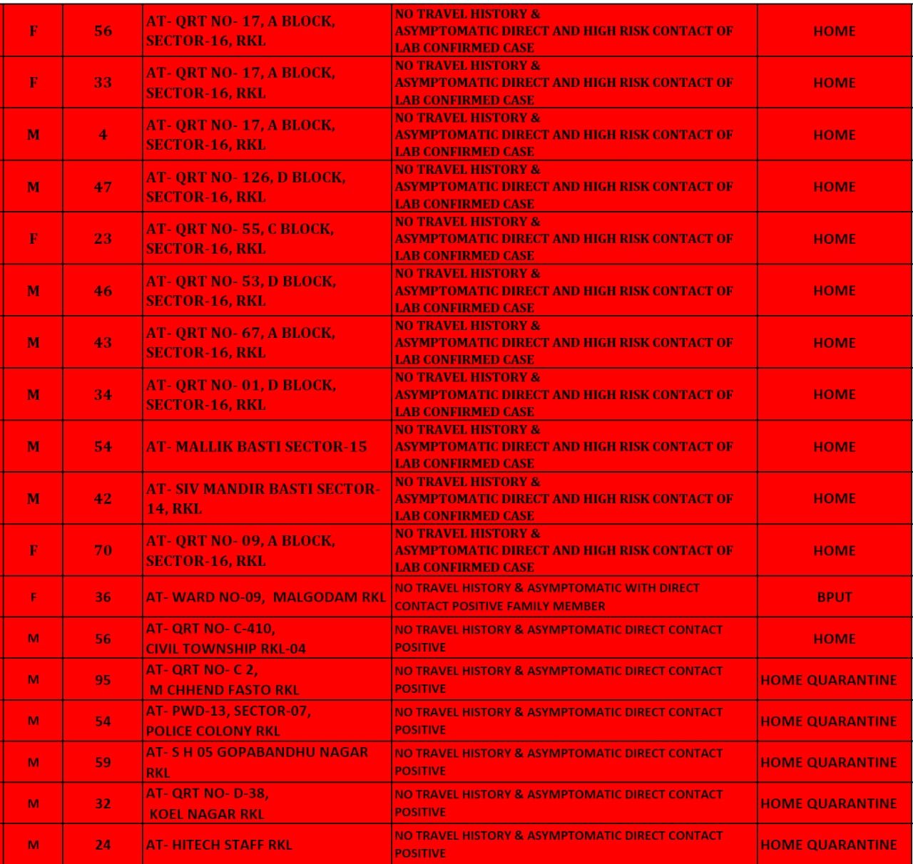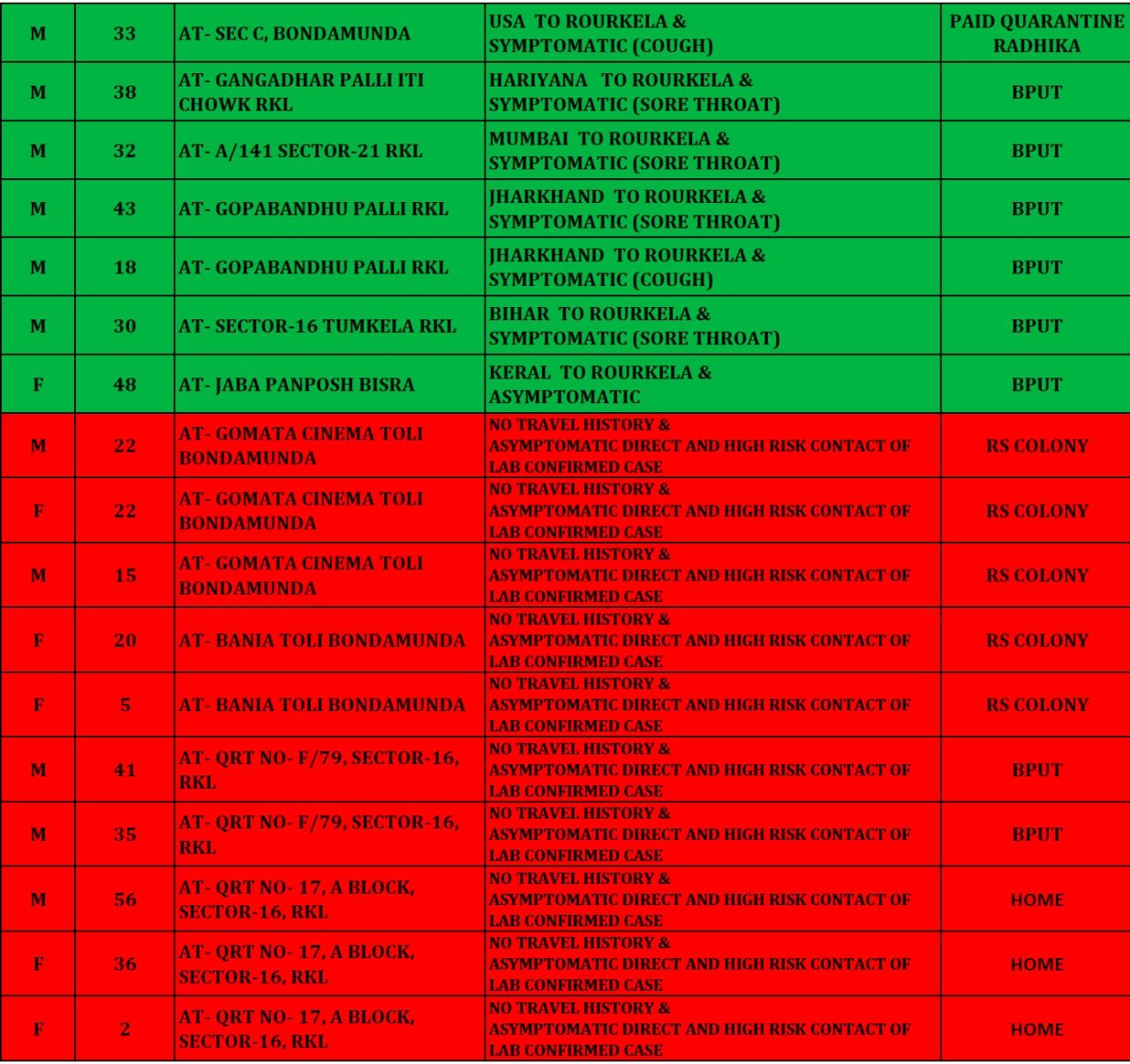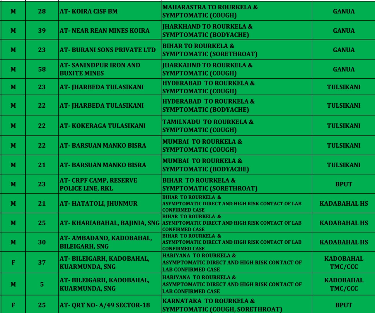 According to the district administration, two of the new patients are currently at Bhubaneswar COVID hospital, two are local contacts, 23 had the travel history, 22 are contacts of previous positive cases, three COVID warriors from Sundargarh, four COVID warriors working at BPUT, Rourkela, 14 are from TMC Sundargarh (contacts of previous positive)and three are pregnant women.