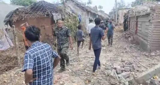 According to sources, the explosion took place at around 11 am. A trader had stored a large quantity of firecrackers in a rented house at Jiakata. The firecrackers ignited for unknown reasons, triggering a massive blast that reduced several nearby houses to rubble. Glass panes of several shops in Purunakatak market, nearly a kilometre away, were also shattered under the impact of the explosion.