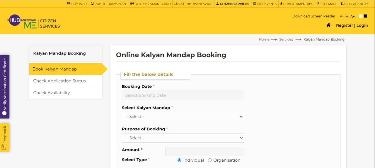 The completely automated and online booking system developed by the Bhubaneswar Smart City Limited (BSCL) will now allow citizens to book the venues from the comfort of their homes by visiting Bhubaneswar.Me portal and selecting citizen services options.