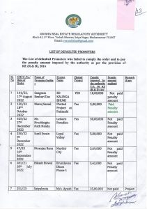 ORERA released the list of such defaulting promoters on November 28. The penalties have been imposed for not complying with the statutory provisions of Real Estate (Regulation and Development) Act, 2016).