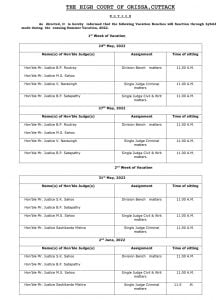 Cuttack: The Orissa High Court on Friday released the list of vacation benches during the ensuing summer vacation.