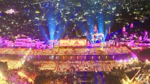 Thousands watched from the banks of Saryu and from a distance in the city as dazzling laser and light shows were conducted. Among the many highlights were drone shows and Ram Leela narrated through a sound-light show.