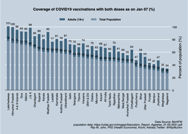 At 70.65 per cent, Odisha’s double dose vaccination is better than Maharashtra, Tamil Nadu, West Bengal, Andhra Pradesh, Punjab and Uttar Pradesh.