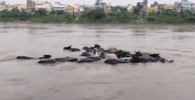 Officials said all the cattle were rescued and brought to safety after a nearly four-hour-long operation carried out by the Fire Service personnel in a swift operation. The timely rescue of the animals was crucial, as the river water level is expected to rise further, they said.