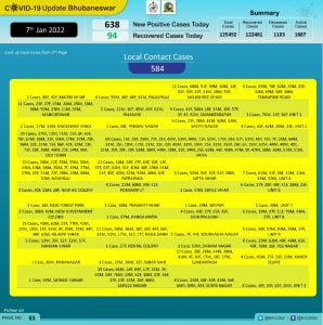 According to Bhubaneswar Municipal Corporation (BMC), of the day’s total cases, 584 patients are local contacts while 54 are from quarantine.