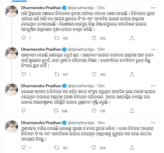 ଯାଜପୁର ଜିଲ୍ଲା ବିଞ୍ଝାରପୁରରେ ସାମ୍ବାଦିକମାନଙ୍କୁ ହୋଇଥିବା ଆକ୍ରମଣ ଘଟଣାର ଦୃଢ଼ ନିନ୍ଦା କରୁଛି। ଗଣତନ୍ତ୍ରରେ ହିଂସାର କୌଣସି ସ୍ଥାନ ନାହିଁ। ଏପରି କାର୍ଯ୍ୟ କରିଥିବା ସମସ୍ତ ବ୍ୟକ୍ତିଙ୍କ ବିରୋଧରେ ପୋଲିସ ଆଇନ ଅନୁଯାୟୀ କଠୋର କାର୍ଯ୍ୟାନୁଷ୍ଠାନ ଗ୍ରହଣ କରିବ।