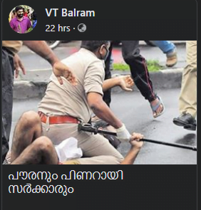 A Congress MLA of Thrithala constituency, VT Balaram took to his Facebook handle condemning the brutal act which was captioned: ‘Citizen and Pinarayi government’