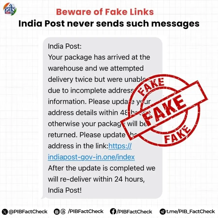 India Post has not issued any such communication and never sends messages asking customers to update personal details through links, PIB has said and cautioned users not to trust these fraudulent notifications, which are designed to create panic and trick individuals into sharing sensitive information.