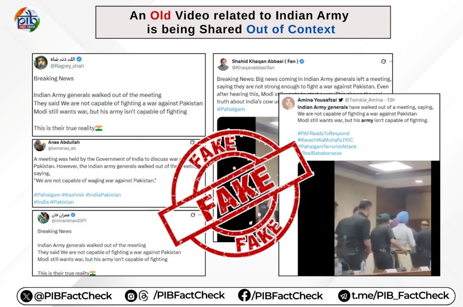 “An old video, along with false claims about the Indian Army, is being widely shared by Pakistan-based accounts on social media platforms. The video is being shared out of context. The shared video is from an old Press Conference dated 25th March 2025,” PIB pointed out.