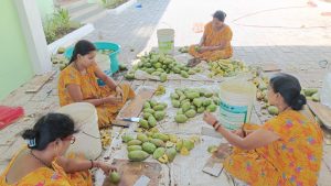 The SHG is procuring mangoes from local SHGs in Gajapati and Kandhamal districts for preparation of pickles. The SHG, which is producing only sweet pickle now, plans to diversify to other varieties soon. Total 3.5 ton pickles are prepared in the unit per month.