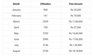 It was followed by Rs 17,66,300 penalty collection in June and Rs 16,46,940 in June and Rs 11,66,600 in May, the release stated. January registered minimum collection of Rs 25,200 fine from 504 offenders.