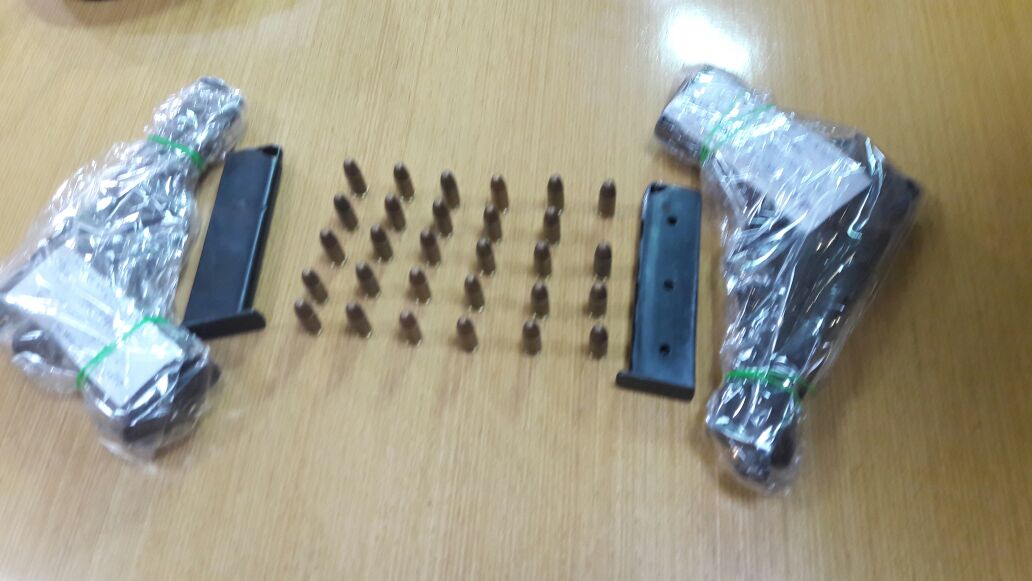 Police seized two 9 mm pistols (one made in USA and the other made in China) and 29 rounds of live 9 mm ammunition.