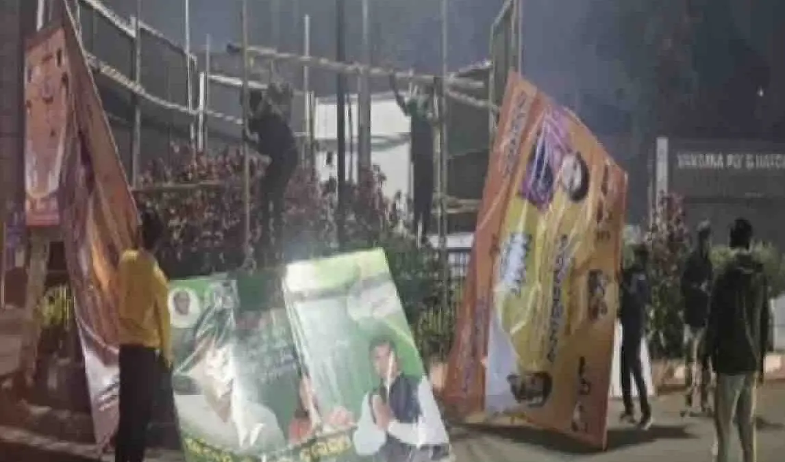 According to sources, the New Year greeting banners erected by various political leaders and local MLAs surrounded and fully covered the pillar, rendering it invisible to passersby.