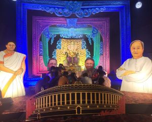 Berhampur: With different puja organising committees coming up with new concepts of pandals and idols, a youths’ assocition has put up the images of President Droupadi Murmu and Odishs Chief Minister Naveen Patanik along with the idol of Lord Ganesh on its pandal in Berhampur city of Ganjam district.