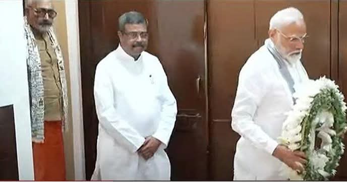 While President Droupadi Murmu expressed deep sorrow over the death of Pradhan, father of Union Minister Dharmendra Pradhan, Prime Minister Narendra Modi paid his last respects to the departed leader. Modi visited Dharmendra Pradhan’s residence and paid homage to the late leader.