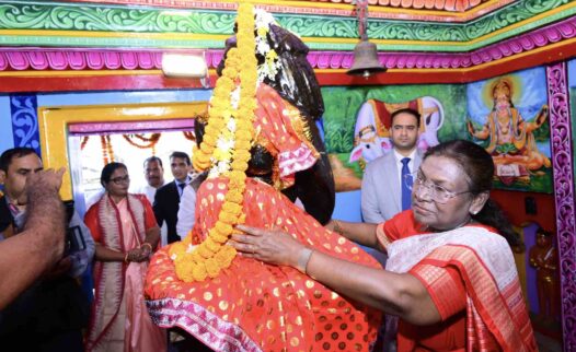 Later, Murmu went to Kaliapalli, the village of Sabar Raja Biswabasu, and unveiled his statue. She also participated in the concluding rituals of the ‘Vishwashanti Mahayajna’ and attend a public gathering organised by the Biswabasu Shabar Samaj.