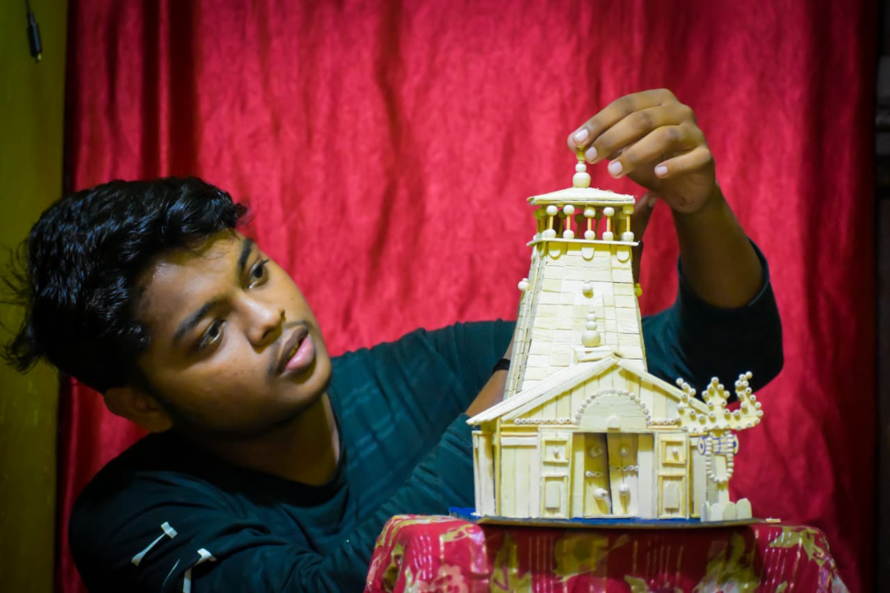 Puri: Days after the Kedarnath shrine was reopened on May 17 amidst strict COVID-19 protocol, a young artist from Puri, Biswajit Nayak, has created a miniature model of the temple.