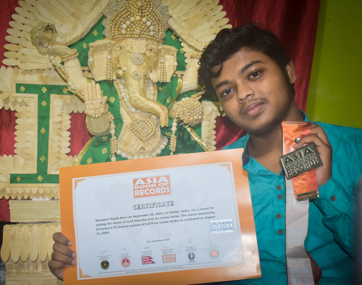 Likewise, Biswajit had made an idol of Lord Ganesh with 5,575 ice-cream sticks during Ganesh Puja in 30 days. The idol is 55-inches in height and 33-inches in width. He made it to the Asia Book of Records for this idol.