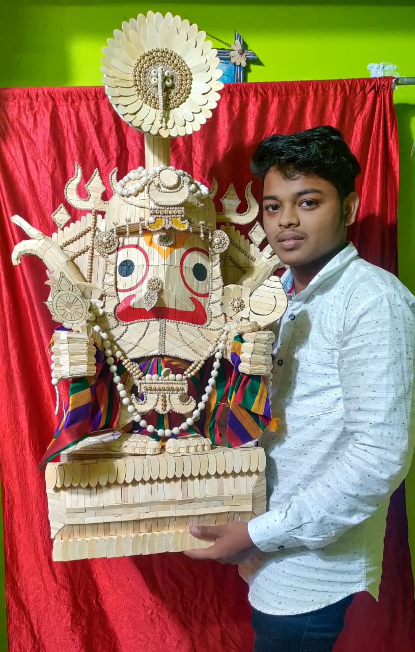 Saswat, a native of Kumbharapada in Puri district had made an idol of Lord Jagannath using 7,881 matchsticks, making it to the India Book of Records.
