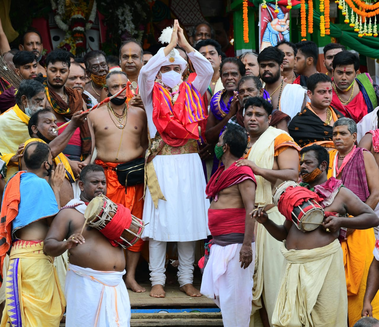 Puri: Bahuda Yatra on Tuesday marked the 50th year of Gajapati Maharaja Dibyasingha Deb (67) performing the hereditary Chhera Pahanra ritual on the chariots of the deities of Jagannath Temple in Puri. None of his predecessors achieved this rare feat.