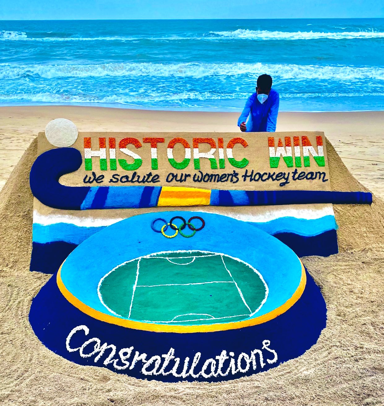 Sudarsan had also created a sand art to salute the Indian women’s hockey team for entering the Olympic semi-final for the first time.