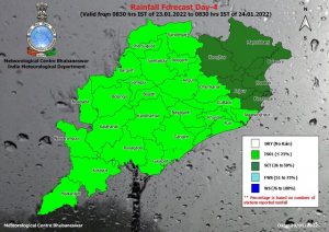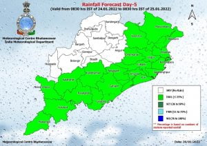 Bhubaneswar: Light to moderate rain and thundershowers are likely over several parts of Odisha from January 21 to 24, the India Meteorological Department (IMD) and the regional meteorological centre here forecast on Thursday.