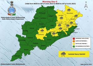 Jan 10 (valid till 8.30 am): Light to moderate rain or thundershower at one or two places in Nuapada, Bargarh, Jharsuguda and Sundargarh.