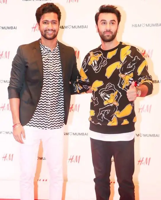 The first-look picture, shared by the industry handle The Climax India, shows Ranbir and Vicky dressed in full Air Force uniforms, sporting moustaches and aviator glasses, standing next to a fighter jet.