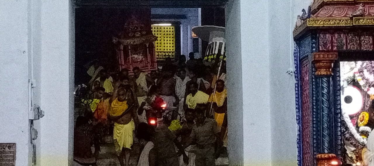 The servitors carried the idol of Goddess Lakshmi from the Srimandir to the Gundicha Temple in a beautifully palanquin. After knowing that Goddess Mahalaxmi is coming to meet him and is angry, Lord Jagannath asks his servitors to quickly lock the door of Gundicha Temple.