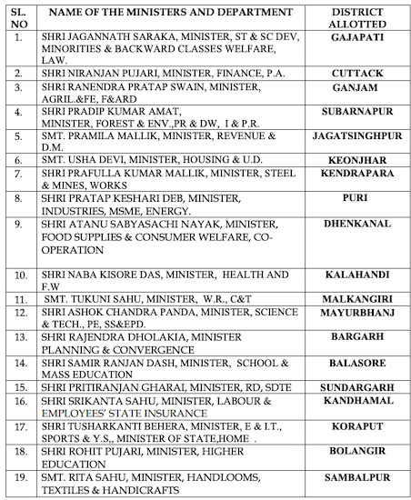 Bhubaneswar: The Odisha government on Friday released the list of ministers and other dignitaries, who would unfurl the National Flag and take salute during the 74th Republic Day celebrations in different districts of the state.