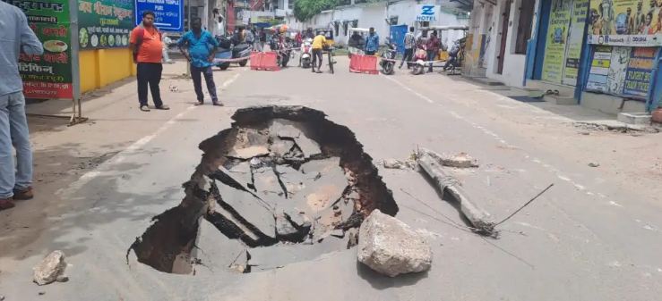 Claiming that a similar incident had taken place on the road a few months ago when a sewerage pipeline had burst, local residents said the repair work done in a hurried manner ahead of Rath Yatra was shoddy. They demanded immediate steps to properly reconstruct the road for the safety of people.