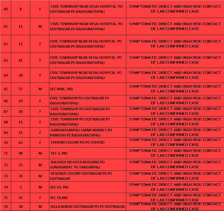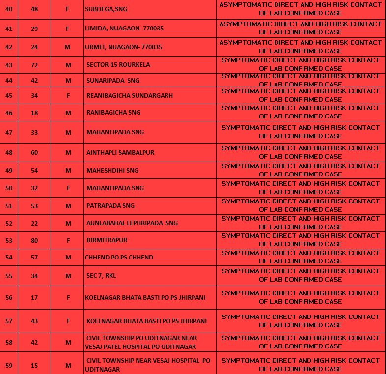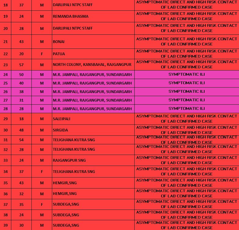 According to the district administration, 39 of the new cases have been reported from Rourkela.