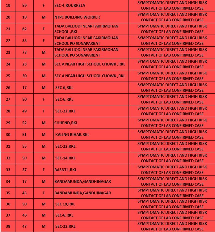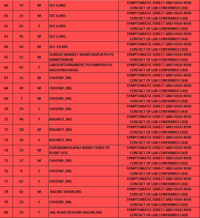 Rourkela: The Steel City alone has reported 84 of the 96 new COVID-19 cases in Odisha’s Sundargarh district on Monday, which has pushed the tally to 4,943.