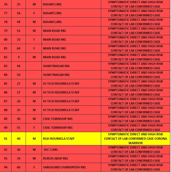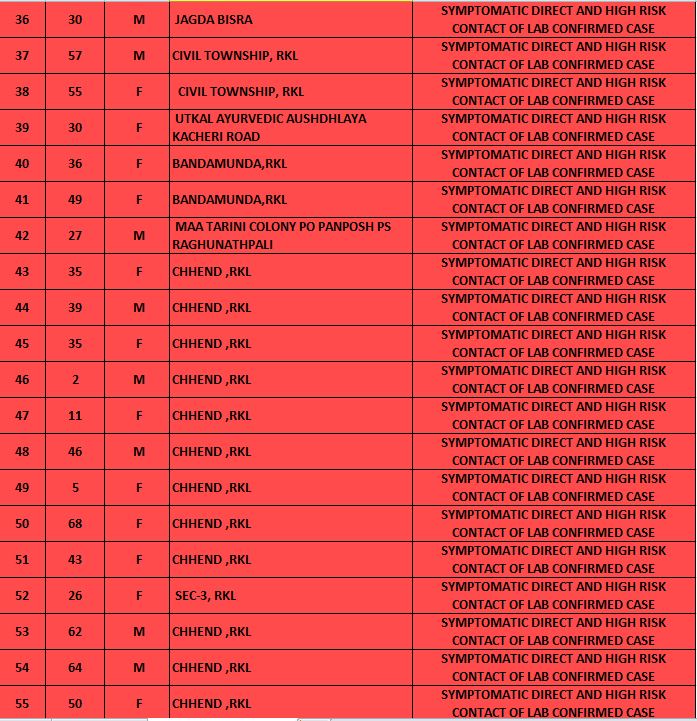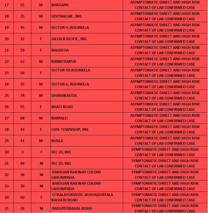 Among the new cases, four are corona warriors while 30 are from Rourkela Government Hospital, Ispat General Hospital and Hi-Tech Medical College & Hospital, Rourkela.