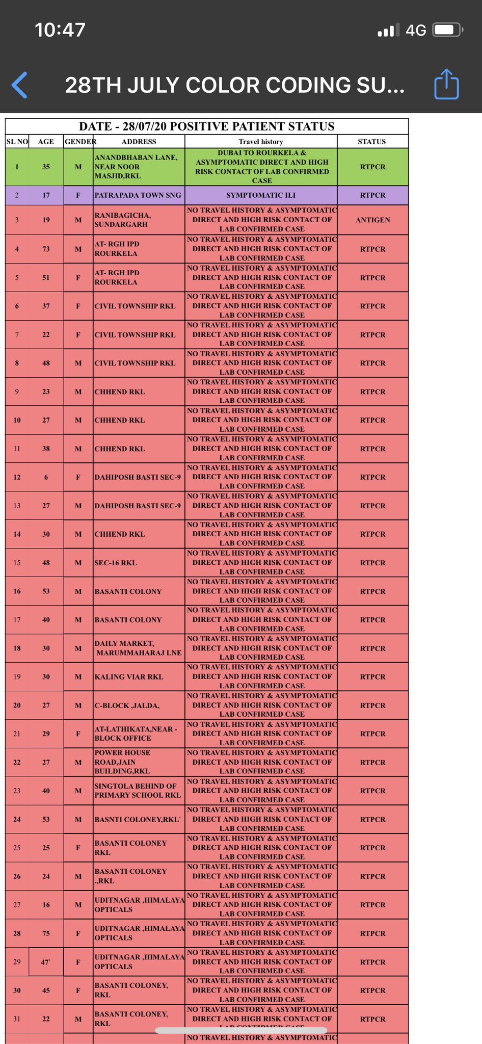 Majority of the new cases are from Rourkela and contacts of previous patients. One among them has travel history to Dubai.