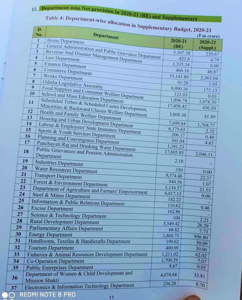 Bhubaneswar: The house proceeding was adjourned till Saturday after Finance Minister Niranjan Pujari presented the first Supplementary Budget amounting to ₹11,200 crore for 2020-21 in the Odisha Assembly on Friday.