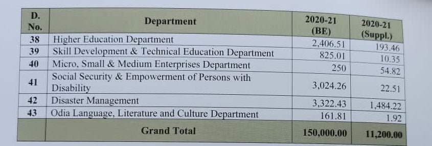 According to the supplementary provisions, ₹2,273 crore has been allotted towards Administrative Expenditure, Rs 1,484 crore towards Disaster Management Funds, Rs 5 crore towards Transfer to Local Bodies and Rs 7,438 crore towards Programme Expenditure.