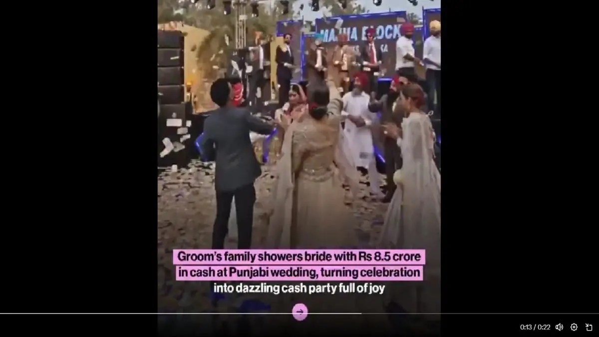 Tarn Taran: A viral video from a wedding in Tarn Taran district of Punjab has ignited widespread discussion online after viewers circulated claims that the bride was showered with Rs 85 crore in cash during the celebrations. Several NRIs from Australia and Canada attended, sources cited in a Times Now news report said.