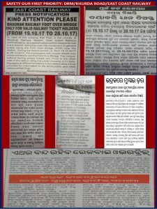 “We do not want any unfortunate incident to happen. Safety comes first. All concerned are requested to extend full cooperation to the Railways for greater public good,” said Divisional Railway Manager, Khurda Road, Brij Mohan Agarwal.