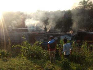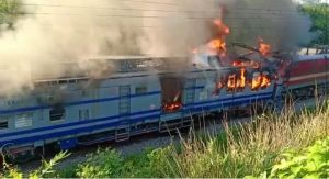 Rayagada: Three railway employees perished in the fire that engulfed the engine of 18005 Howrah-Jagdalpur-Samaleswari Express after the train hit a tower car engaged in repair work between Keutguda and Singapur Road here at around 4:30 pm on Tuesday.