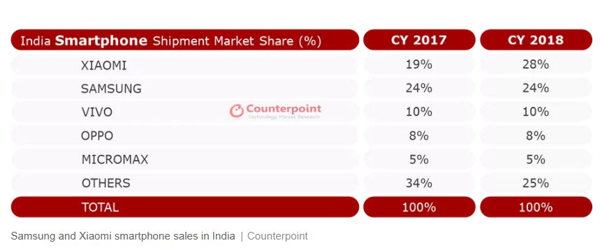 New Delhi: Facts first! Samsung lost the numero uno position in smartphone sales to Xiaomi in late 2017. Currently, the Chinese maker with its aggressively priced phones has the leading market share of 28 per cent while Samsung is at 24 per cent, according to report by Counterpoint Research. One of the primary reasons for this has been affordability.