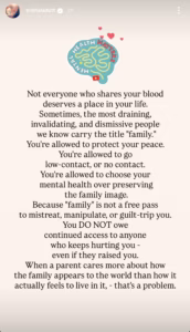 Highlighting that children are allowed to distance themselves from parents who ‘mistreat’ and ‘guilt-trip’ their kids, she added, “Because ‘family’ is not a free pass to mistreat, manipulate, or guilt-trip you. You DO NOT owe continued access to anyone who keeps hurting you — even if they raised you. When a parent cares more about how the family appears to the world than how it actually feels to live in it, that’s a problem.”
